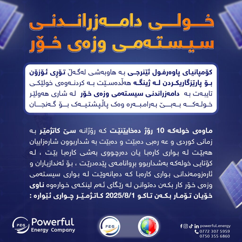 شبكة الأوزون بالشراكة مع شركة فول ئينيرجي ستقوم بعقد دورة تدريبية حضورية في أربيل حول أنظمة الطاقة الشمسية في محافظة اربيل ,للتسجيل عبر ملء نموذج الاستمارة التالية