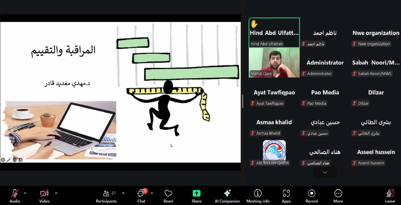 في إطار برنامج التطوير المؤسسي للمنظمات غير الحكومية، الذي تنفّذه منظمة النجدة الشعبية (PAO) بالشراكة مع دائرة المنظمات غير الحكومية، عُقد يوم السبت الموافق 1 تشرين الثاني 2025 تدريب إلكتروني متخصّص حول آليات المتابعة والتقييم في المنظمات غير الحكومية.