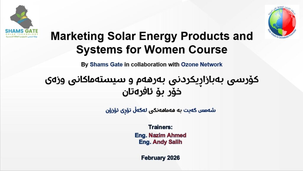 خولی بە بازاڕکردنی بەرهەم و سیستەمەکانی وزەی خۆر بۆ ئافرەتان |Marketing Solar Energy Products and Systems for Women Training CourseContinue Reading
